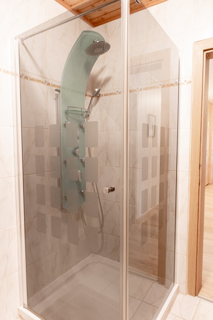 - Badezimmer (Dusche, WC, Waschbecken, Föhn, Dusch- und Badetücher)